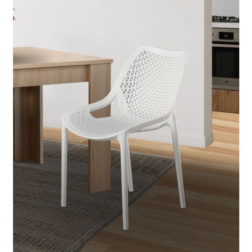 In polipropilene bianco Struttura reticolata e schienale avvolgente Impilabile Altezza seduta: 45 cm Uso interno o esternoSedia In Polipropilene Bianca è ideale per chi cerca una sedia di design capace di arredare con gusto cucina, zona pranzo o living, offrendo al tempo stesso resistenza, praticità e una presenza estetica raffinata.