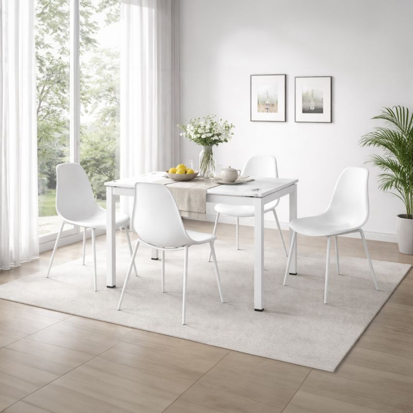 Tavolo Da Pranzo Allungabile 110/170 X 70 interpreta il comfort quotidiano con linee ben proporzionate e materiali adatti a un utilizzo frequente. Tavolo da pranzo allungabile Piano in vetro effetto marmo Struttura in metallo Allungato: 170 x 70 x 75h (cm)