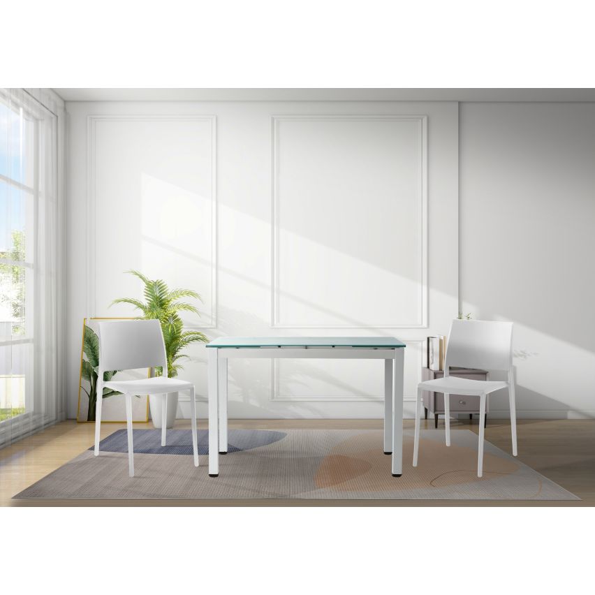 Tavolo da pranzo allungabile Piano in vetro (spessore 10 mm) Struttura in metallo bianca Allungabile: 2x45 cm (210x80x76h)Un prodotto pensato per l'uso quotidiano