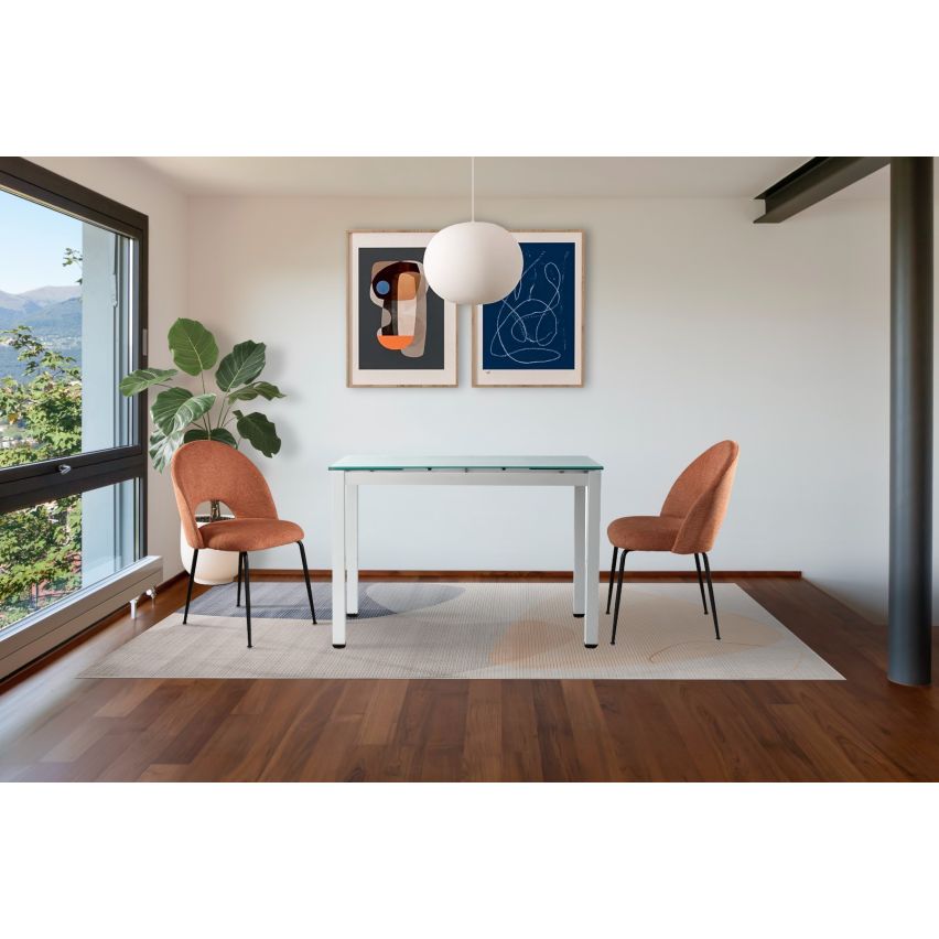 Tavolo da pranzo allungabile Piano in vetro (spessore 10 mm) Struttura in metallo bianca Allungabile: 2x30 cm (200x80x76h)Dettagli che fanno la differenza