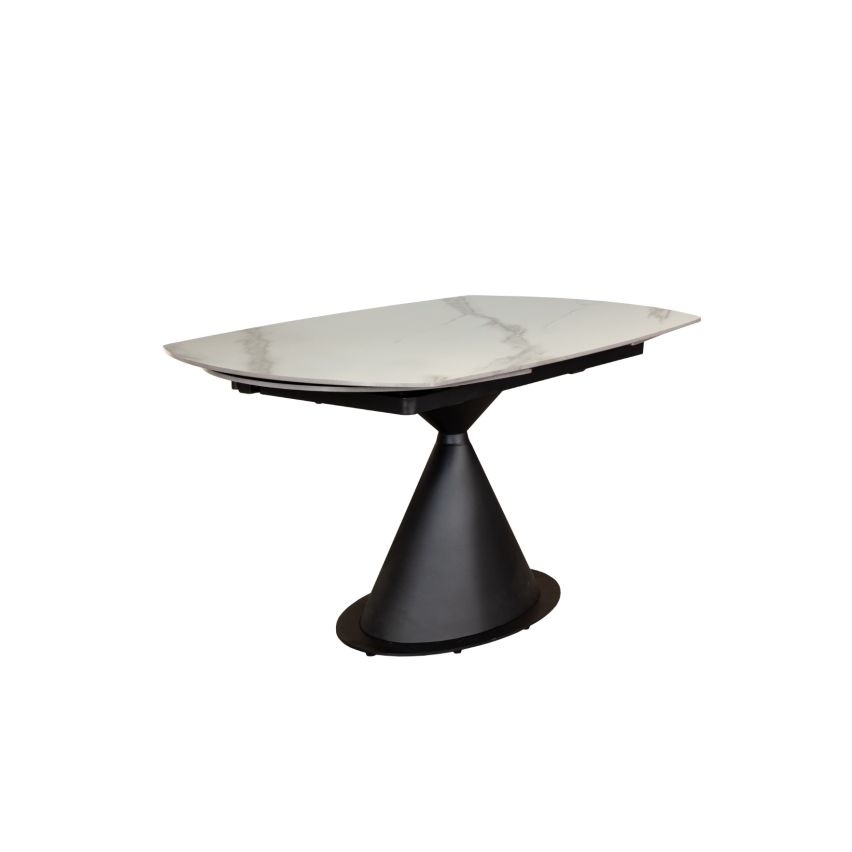 Tavolo allungabile ovale in ceramica effetto marmo bianco con sistema twist